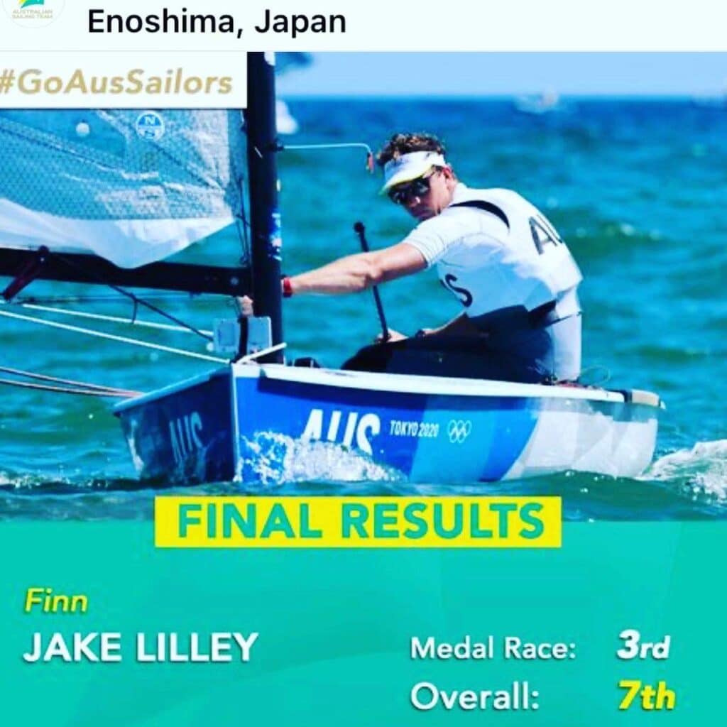Jake Lilley (OC 2010) capped his Tokyo campaign by crossing the line in third place in the medal race to secure 7th overall in the Men’s One Person Dinghy (Heavyweight) – Finn class, a sensational achievement as Jake endured a full meniscus knee operation only seven weeks before the games and was in a leg brace right up until arriving in Tokyo.